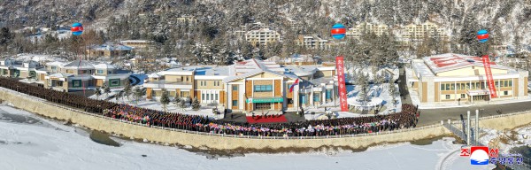 우리 당의 숭고한 인민사랑이 그대로 변혁의 장관으로 펼쳐진 준공식장에 꽃보라가 흩날리고 고무풍선들이 날아올랐다.