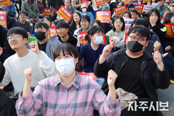 김지선 촛불행동 공동대표는 “112명의 국회의원이 조희대 탄핵안 발의에 서명했고 이제 본회의에 상정한 다음 표결만이 남아 있는 상황”이라면서 “속도를 더 내야 하지 않겠나?”라고 외쳤다.