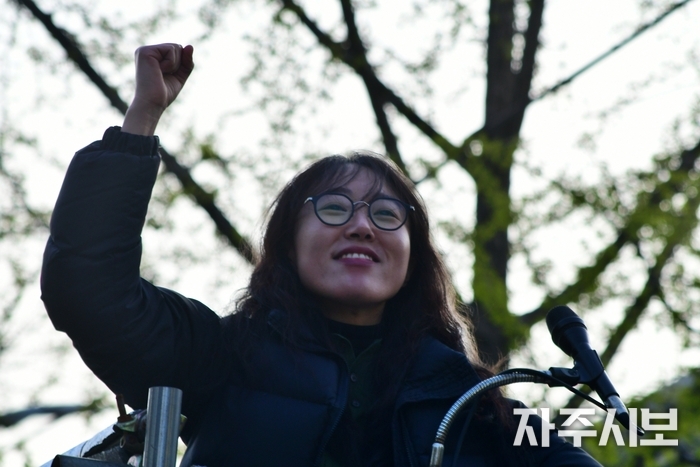김은진 촛불행동 공동대표는 지난 7일 법원이 전광훈을 보석으로 풀어준 일을 언급하며 “법원 폭동의 주모자를 보석으로 풀어준 것은 조희대 사법부가 내란세력에게 살길을 열어주려는 것”이라고 주장했다.