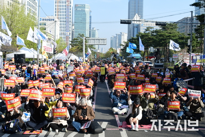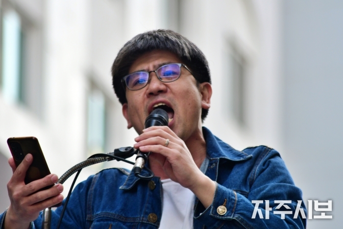 사회자의 힘찬 구호 선창으로 집회가 시작됐다.
