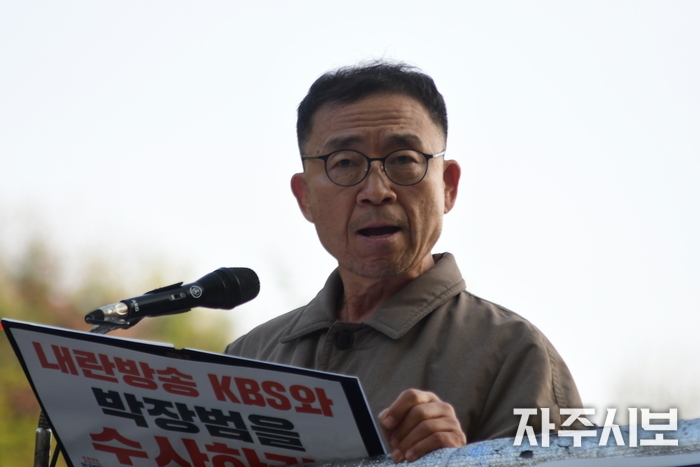 KBS 방송국 앞에서 진행된 정리집회에서 이득우 촛불행동 언론개혁특별위원회 위원장은 “KBS는 얼마 전 메인 뉴스에서 이란전쟁에서의 미군 구출 작전 영상을 가상의 인공지능 생성 영상으로 만들어서 침략군인 미군을 미화하는 방송을 했다”라고 소개하고 “전쟁이 당신들에겐 게임인가? 침략자 망나니 트럼프나 네타냐후가 무슨 영웅이라도 되나?”라고 물었다.