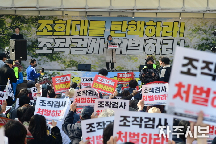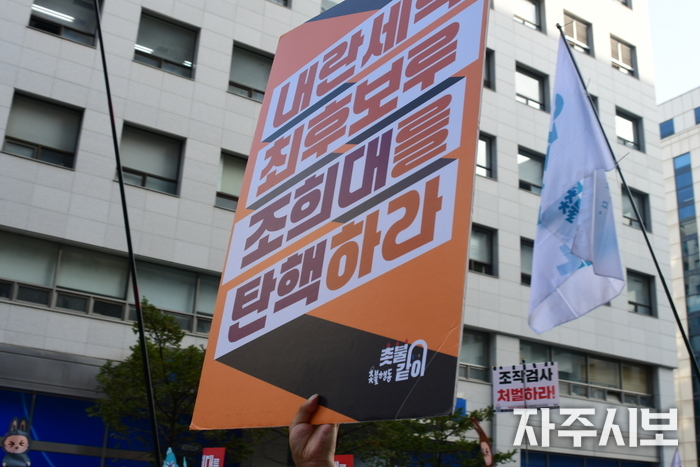 ‘조희대를 탄핵하라! 조작검사 처벌하라!’라는 부제로 열린 이날 집회에는 주최 측 추산 연인원 2,400여 명이 참가했다.