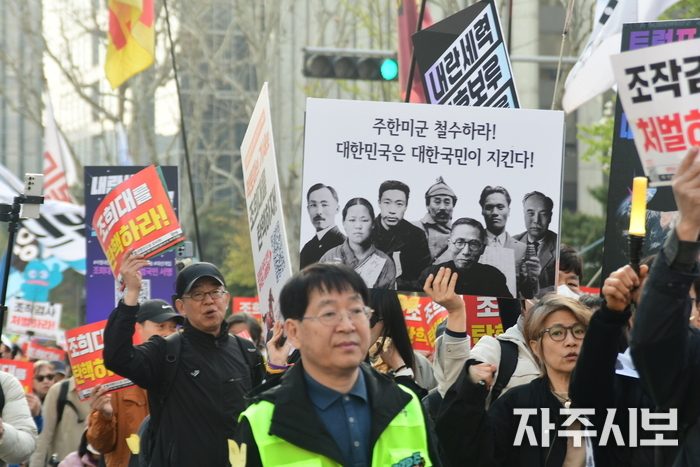 “조희대 탄핵! 조작검사 처벌! 전쟁화근 주한미군기지 철수!”…186차 촛불 열려