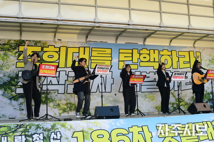 조희대 대법원장 탄핵이 늦어지는 가운데 ‘내란청산 국민주권실현 186차 촛불대행진’이 11일 오후 4시 국회 앞에서 열렸다.
