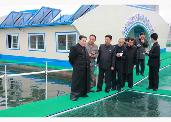 김정은 제1비서 대동강에 새로 설치한 이동식그물우리양어장을 현지지도