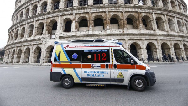 사진 : 완전히 비워버린 로마의 콜로세움광장을 구급차 한대가 외로히 달리고있다