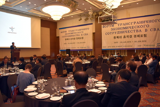 북한·중국·러시아 접경지역에서의 금융·관광·물류 등 한국과 러시아의 전략적 경제협력 방안을 모색하기 위해 4일 러시아 블라디보스토크 롯데호텔에서 진행된 '동북아 초국경 경제협력 포럼'