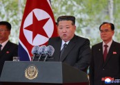 사진 조선로동당 김정은 총비서가 기념연설을 하고있다