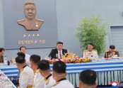 조선민주주의인민공화국 김정은 국무위원장 무장장비전시회 《국방발전-2025》 2일 참관일정에 따라 구축함 《최현》호 방문