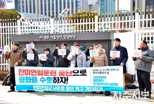 지난달 각계 시민사회, 종교계 그리고 국회의원들까지 참여해 훈련 중단 촉구를 선언했다. 이대로 훈련을 강행해서는 안 된다는 절박한 호소이자 강력한 경고다. 주권 침해, 침략 전쟁을 일삼는 트럼프 미국에 끌려가면서 전쟁훈련을 함께하는 것 자체가 극히 위험할 뿐만 아니라 수치스러운 일이다. 더욱이 이재명 정부가 남북관계 개선을 추구하는 상황에서 한미연합훈련은 모든 노력을 물거품으로 만드는 어리석은 짓이다.