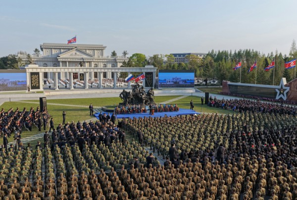 성스러운 사명과 의무를 지니고 형제적인 로씨야련방의 꾸르스크주를 해방하기 위한 특수군사작전에서 발휘된 우리 군대특유의 사상정신적우월성과 대중적영웅주의,무비의 용감성을 길이 전하게 될 불멸의 전당은 가장 정의로운 인민,가장 강대한 우리 군대의 상징으로,피로써 맺어지고 공고화되는 조로관계발전에 무궁한 생명력을 부어주는
