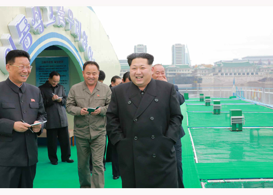 김정은 제1비서 대동강에 새로 설치한 이동식그물우리양어장을 현지지도